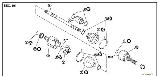 Grease amount : Refer to FAX-49, "Drive Shaft".