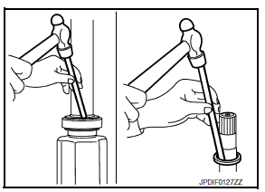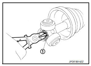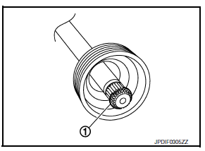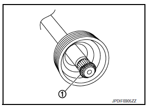 - Fill the serration slot on the joint sub-assembly (1) with NISSAN