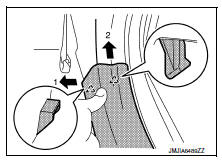 - Remove center pillar lower finisher. Refer to INT-27, "CENTER PILLAR