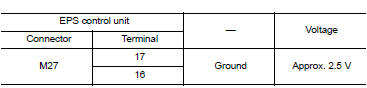 Check voltage between EPS control unit harness connector terminal and ground.