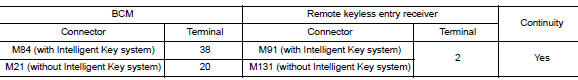 Check continuity between BCM and remote keyless entry receiver connectors.