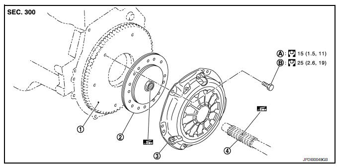 Runout limit/diameter of the area to be measured : Refer to CL-20, "Clutch Disc".