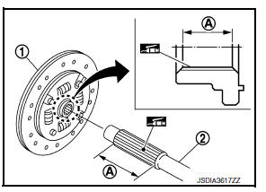 Facing wear limit (depth to the rivet head) “A” : Refer to CL-20, "Clutch Disc".
