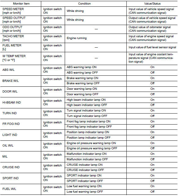 The following table includes information (items) inapplicable to this vehicle. For information (items) applicable to this vehicle, refer to CONSULT display items.