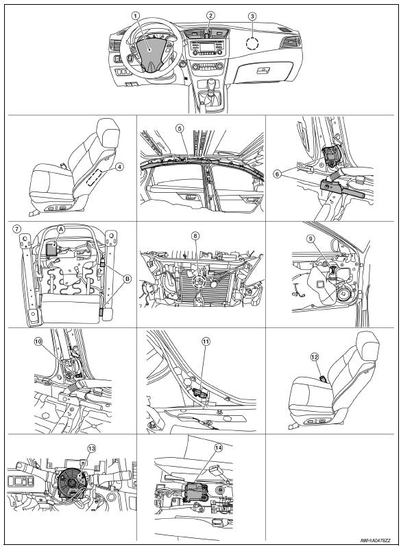 | Air bag diagnosis sensor unit | Refer to SRC-8, "Air Bag Diagnosis Sensor Unit". |