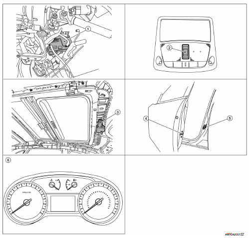 | Front door switch | Detects door open/close condition and transmits to BCM. |