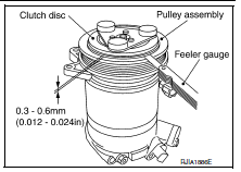 Clutch disc to pulley clearance : 0.3 - 0.6 mm (0.01 - 0.02 in)