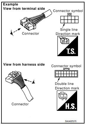 Most of connector symbols in wiring diagrams are shown from the terminal side.