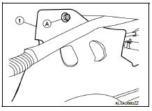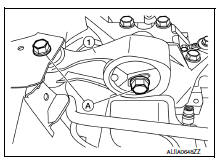 - Remove the engine ground bolts (A) and the engine ground (1).