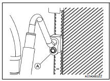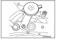 - Remove the washer tank inlet bolt (A), then pull the washer tank