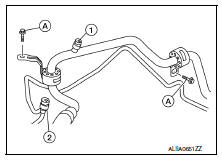 - Remove the bolt (A) that retains the high-pressure pipe and lowpressure