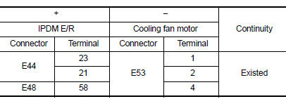 Check cooling fan motor. Refer to EC-464, "Component Inspection (Cooling Fan Motor)".