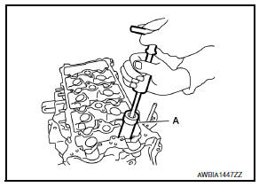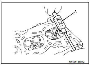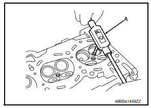 - Ream cylinder head valve guide hole using suitable tool (A).