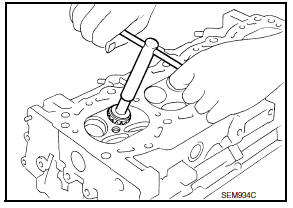 - Remove the front cover and timing chain. Refer to EM-48, "Exploded View".