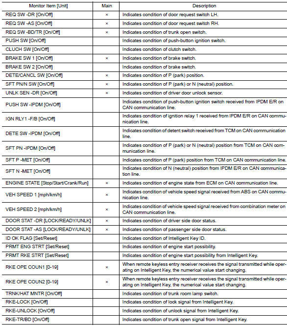 Intelligent key : consult function (bcm - intelligent key)
