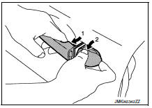 - Remove front door finisher. Refer to INT-15, "Removal and Installation".
