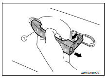- While pulling outside handle (1), remove outside handle