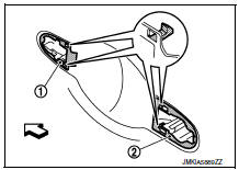 - While pulling outside handle (1), remove door key cylinder