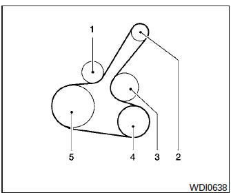 | WARNING Be sure the ignition switch is in the OFF or LOCK position before servicing drive belt. The engine could rotate unexpectedly. |