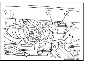 - Support engine (1) and transaxle (2) using suitable jack (A).