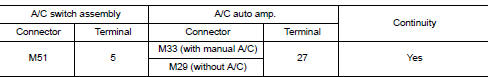 Is the inspection result normal? YES >> Perform trouble diagnosis for the A/C switch assembly. Refer to HAC-160, "A/C SWITCH ASSEMBLY : Diagnosis Procedure".