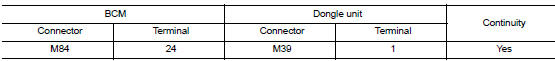 Check continuity between dongle unit harness connector and ground.