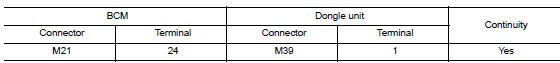 Check continuity between dongle unit harness connector and ground.