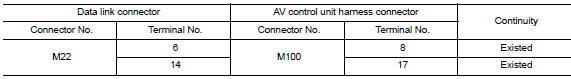 NO >> Repair the main line between the data link connector and the AV control unit.