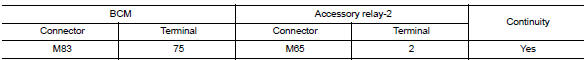 | Acc relay circuit [b2614] | An immediate operation of accessory relay is requested by bcm, but there is no response for more than 1 second. |