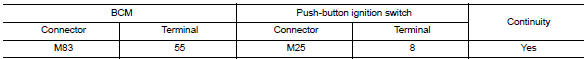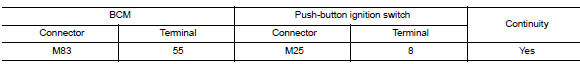 | Push-button ignition switch [b261a] | Bcm detects a difference of signal for 1 second or