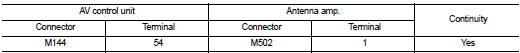 Is the inspection result normal? Yes >> replace antenna amp. Refer to av-306, "removal and installation".