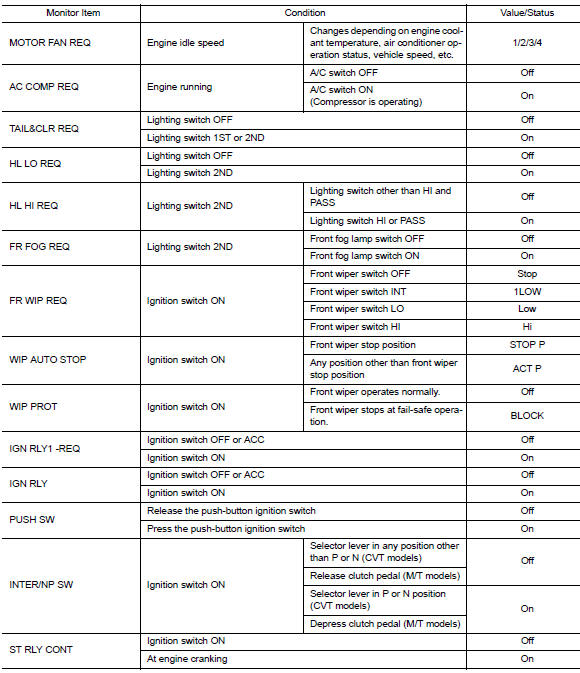 When a front wiper stop position signal is in the conditions listed below, ipdm e/r stops power supply to wiper after repeating a front wiper 10 seconds activation and 20 seconds stop.