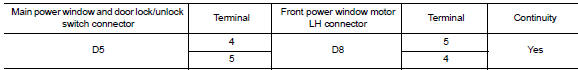 Is the inspection result normal? Yes >> replace front power window motor lh. Refer to gw-16, "removal and installation". After that, refer to pwc-29, "work procedure".