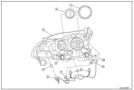 After installation, perform headlamp aiming adjustment. Refer to EXL-115, "Aiming Adjustment".
