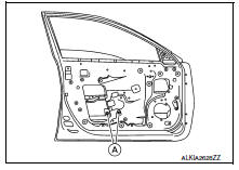 - Remove the front door finisher. Refer to INT-15, "Removal and