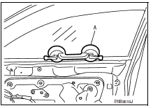 - Remove front door glass regulator bolts (A) and the front door