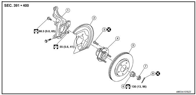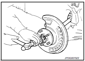 - Remove the wheel and tire using power tool. Refer to WT-47, "Exploded
