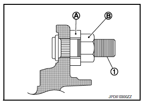 - Place a washer (A) as shown to install the wheel studs (1) by using
