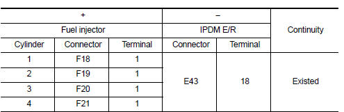 Check the fuel injector. Refer to EC-451, "Component Inspection (Fuel Injector)".