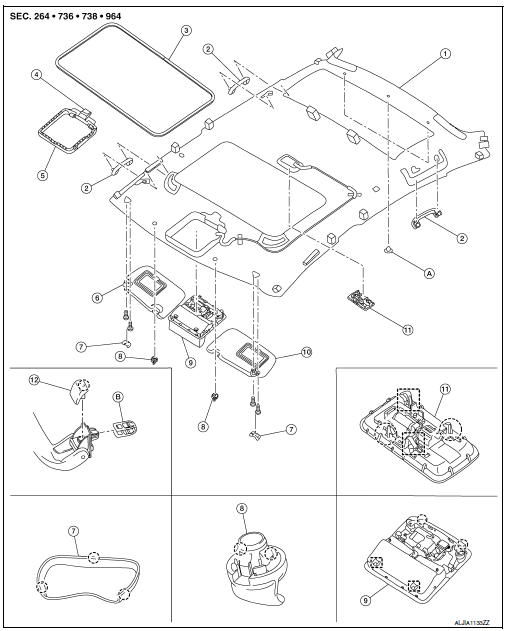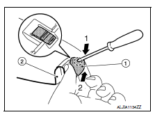 - Remove room lamp. Refer to INL-55, "Removal and Installation".