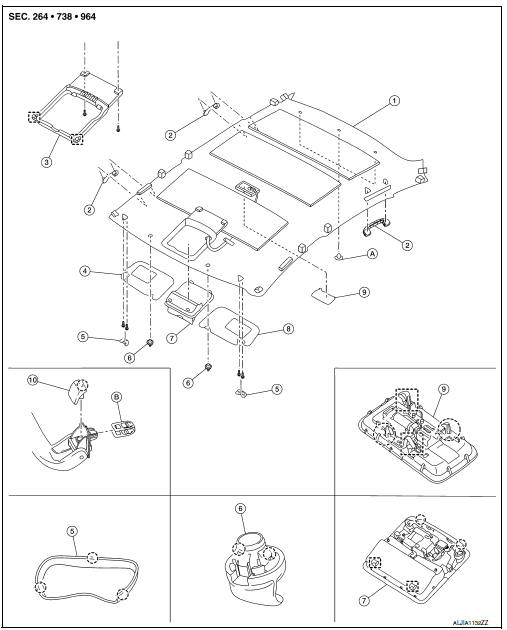 - Remove map lamp. Refer to INL-52, "Removal and Installation".