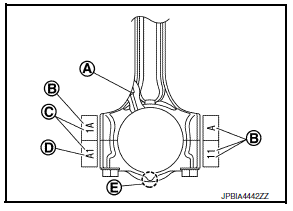Connecting rod bearing grade table : Refer to EM-127, "Connecting Rod