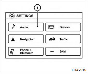 | Selecting the item | Touch an item to select . To select the “Audio” key, touch the “Audio” key 1 on the screen. Touch the “BACK” key to return to the previous screen. | |