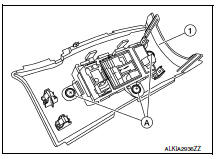 The driver side door request switch and driver side outside handle are serviced as an assembly. Refer to DLK- 173, "FRONT DOOR HANDLE : Removal and Installation - Outside Handle".