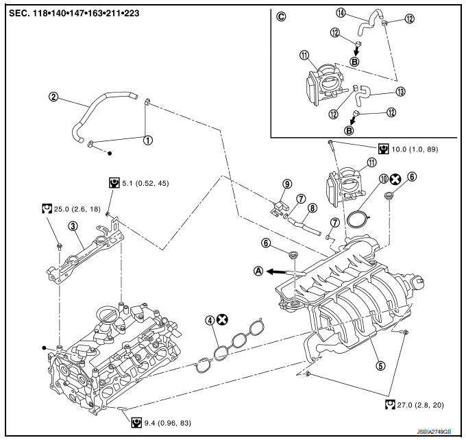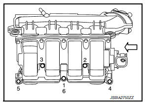 - Loosen intake manifold nuts and bolts in the reverse order as