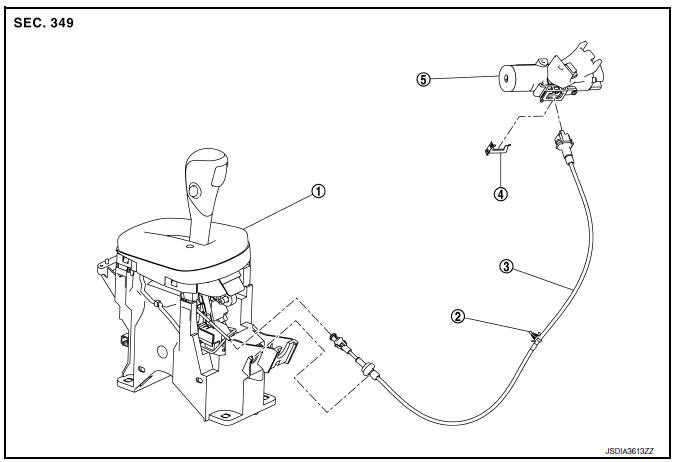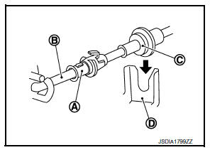 - Press the pawls (B) of the key interlock cable slider (A) while