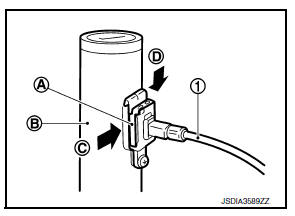 - Install the adjusting holder (A) onto the key interlock rod (B),
