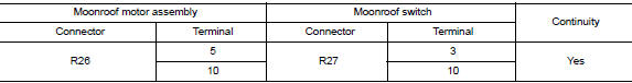 Check continuity between moonroof switch harness connector r27 and ground.