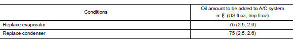Example: Oil amount to be added when replacing evaporator and liquid tank [m (US