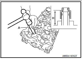 - Press in valve oil seal to the height (H) shown using Tool (A).